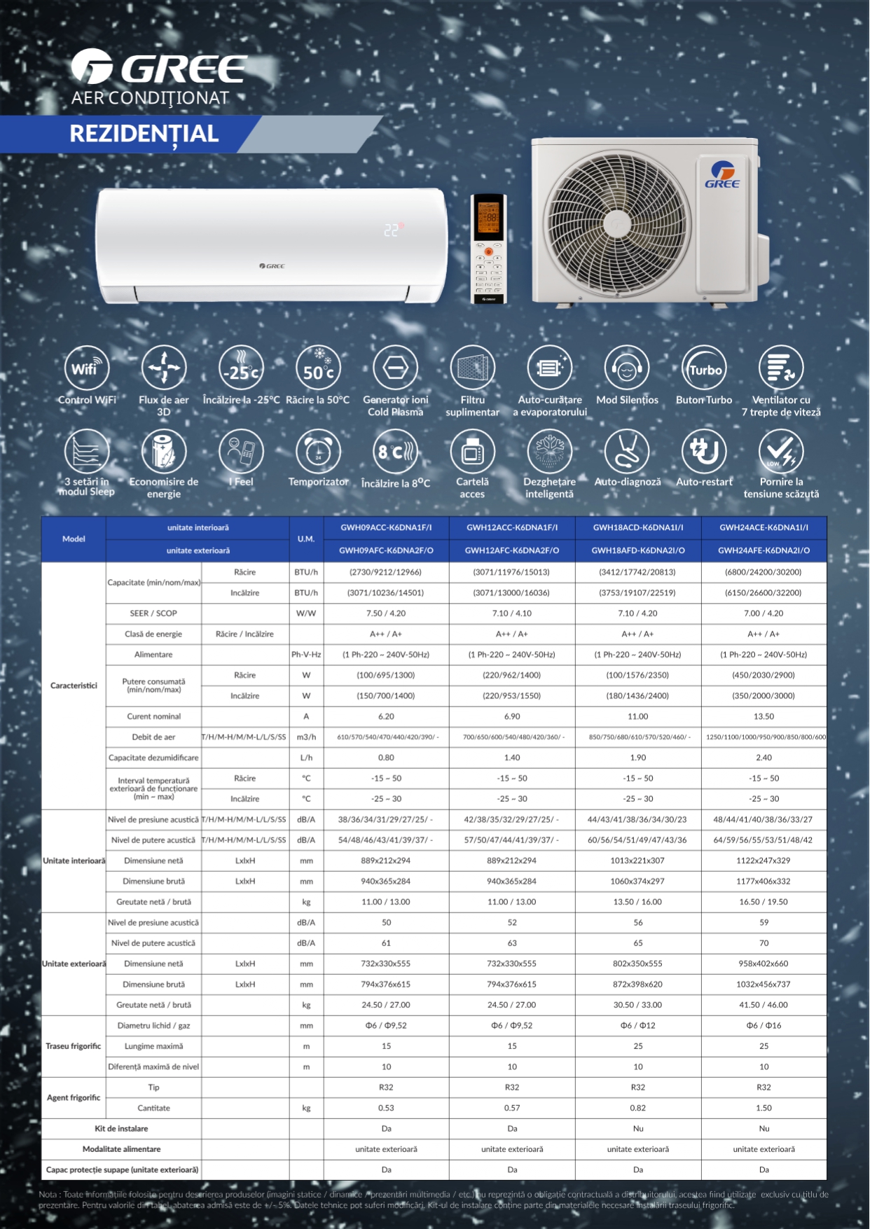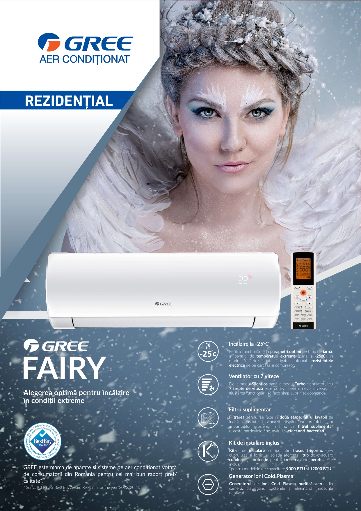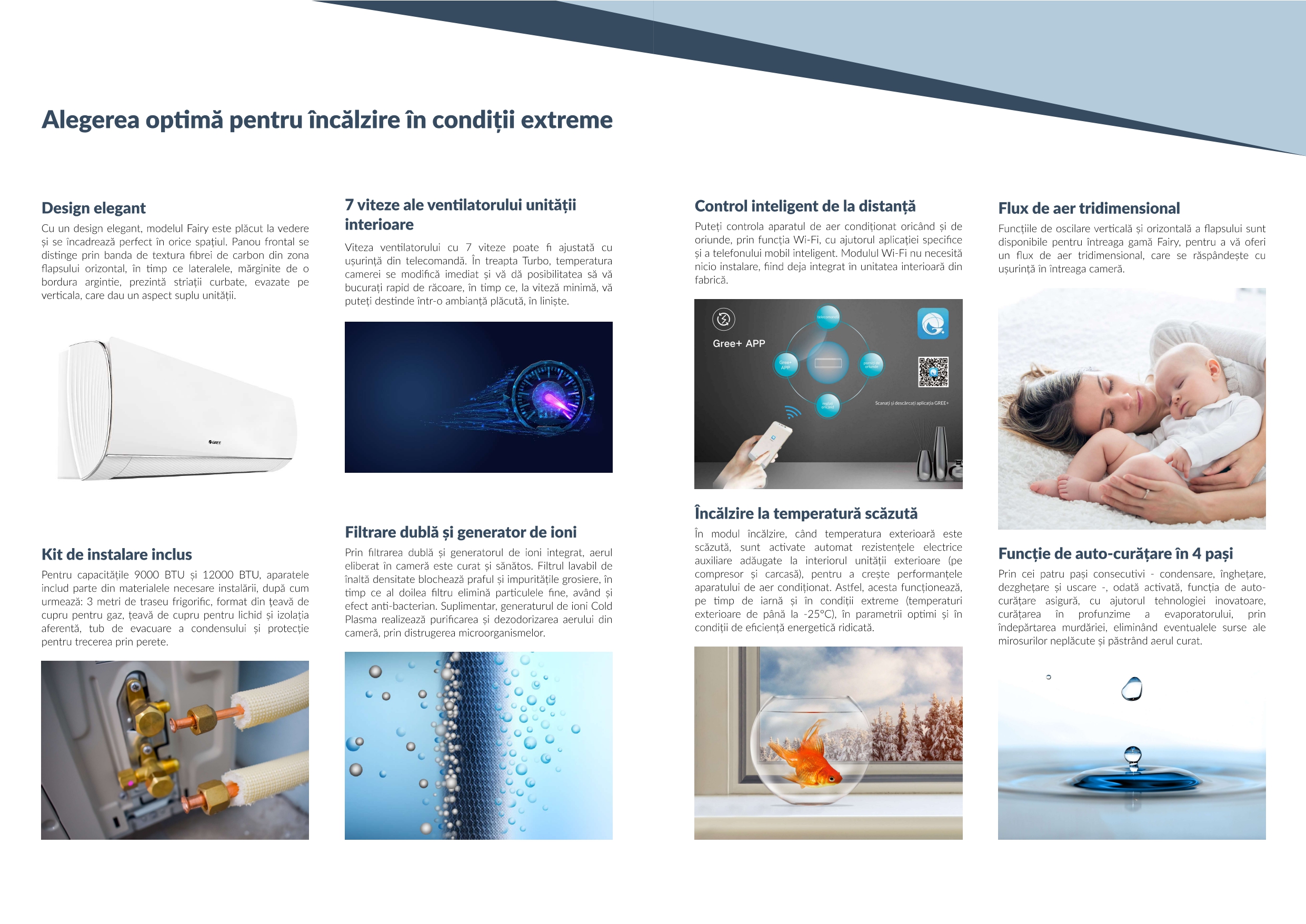 Aparat de aer conditionat Gree Fairy A1 Inverter GWH09ACC-K6DNA1F Wifi inclus ,KIT DE INSTALARE , incalzire - 25 gr C