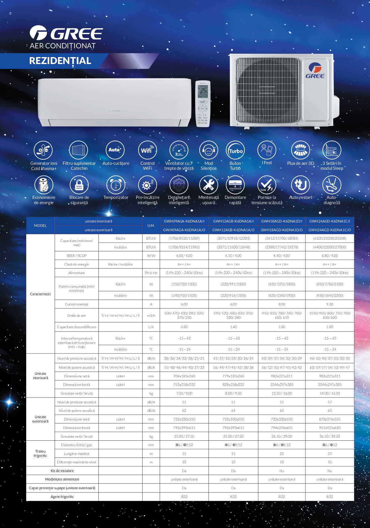 Functii | Control WiFi,Generator ioni Cold Plasma+, Auto-curăţare .Autodiagnoza, Autorestart, Dezghetare Inteligenta, Timer, I Feel, Turbo, Sleep |